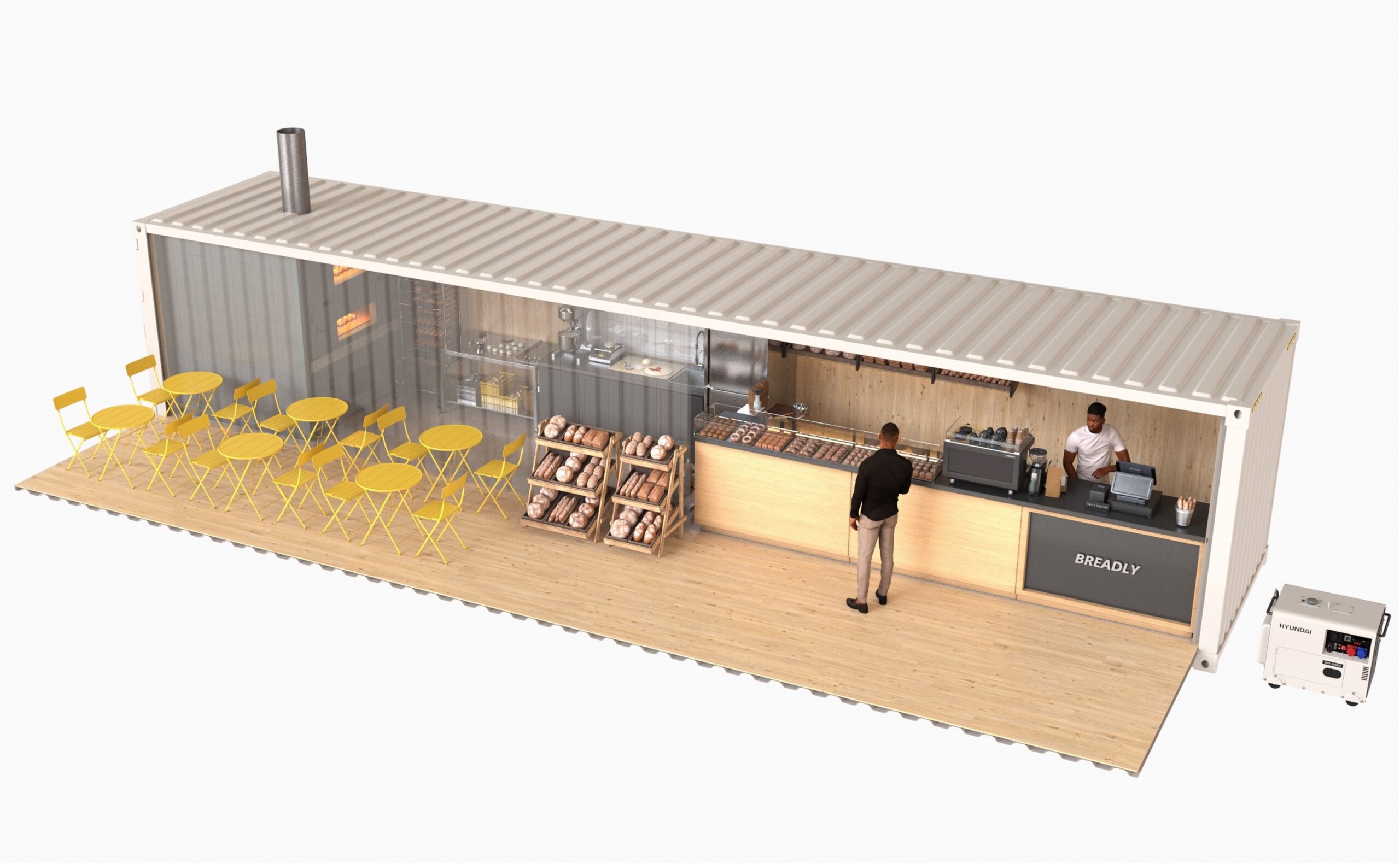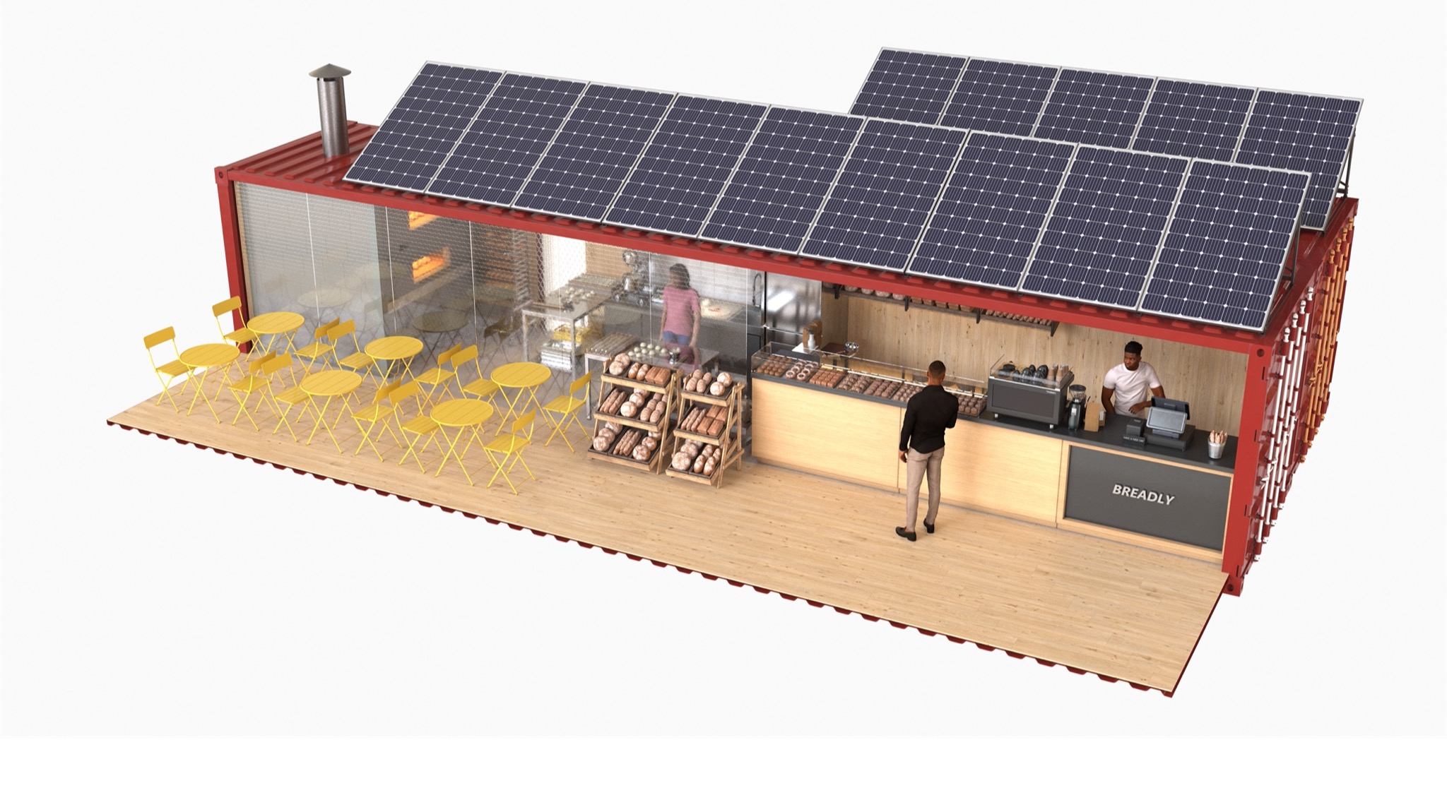 BREADLY combines traditional craftsmanship with modular technology to create compact bakeries that are flexible, self-sufficient, and ready to use — anywhere.